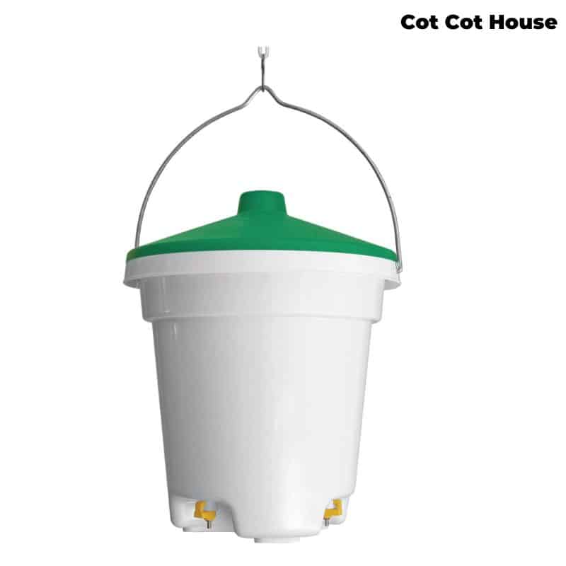 Abreuvoir suspendu de 12 litres avec tétines, idéal pour assurer un accès facile à l'eau propre et fraîche à vos volailles tout en évitant les éclaboussures et le gaspillage.