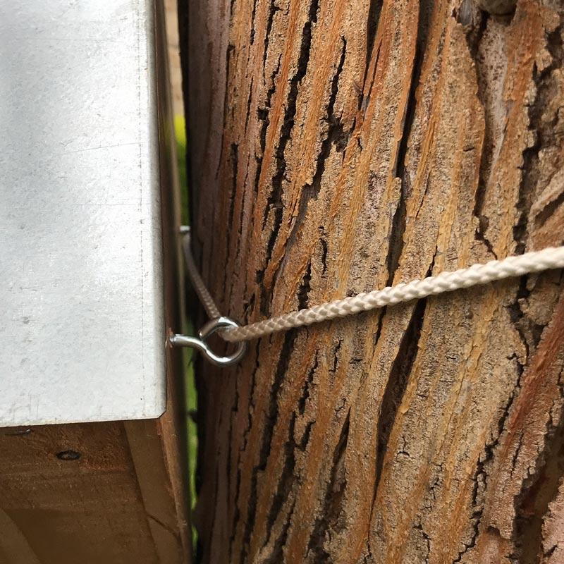 Fixez solidement le nichoir sur un arbre avec l’attache prévue, afin de protéger l’écorce.